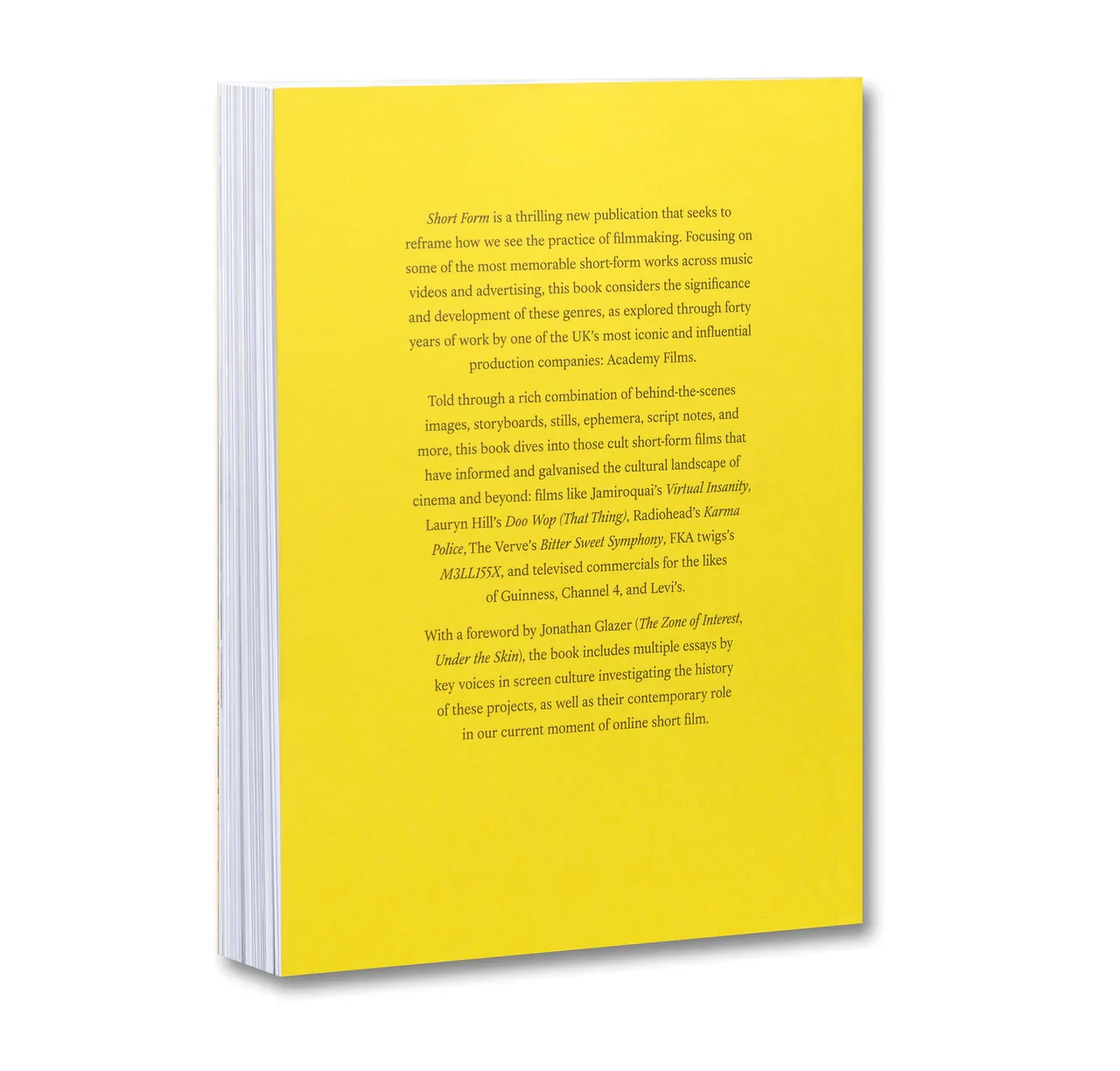 A collaboration with Academy Films to mark 40 years of the production home, this book focuses on some of the most memorable short-form works across music videos and advertising. With a foreword by Jonathan Glazer, SHORT FORM includes multiple essays by key voices in screen culture investigating the history of these projects, as well as their contemporary role in our current moment of online short film. (released October 2025).